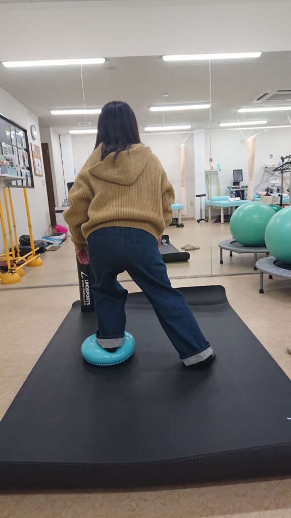 最初はスクワットも上手く形が取れなかったのですが最近ではバランスディスクの上でも出来るようになってきました😃✌️