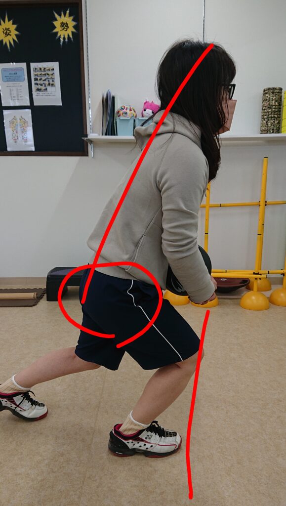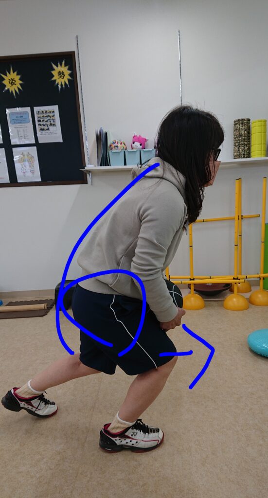 ②膝が前に出ないように